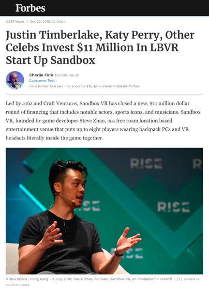 Sandbox VR is the future of entertainment. With over 35 global combined retail and franchise locations, the most advanced VR technology, premium AAA experiences developed in-house, and an exclusive Netflix collaboration, we’re the most successful and fastest growing location-based virtual reality company on the planet. And, with over $60M raised by investors including a16z, Alibaba, Justin Timberlake, Katy Perry, and Kevin Durant, we are continuing our path to rapid growth.